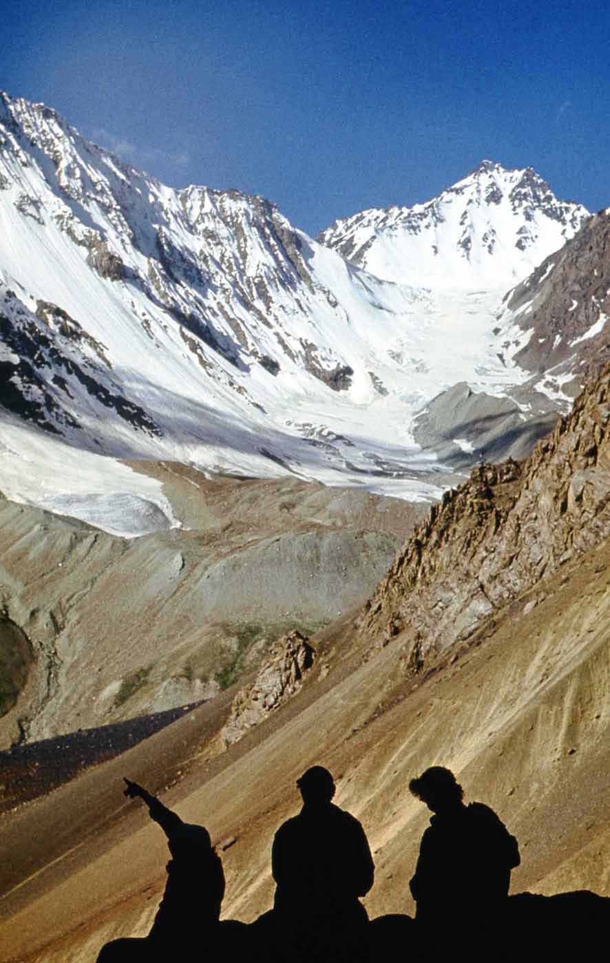 Pamirs - Roof of the World. Height - four thousand meters. Three paleontologists - in the center, as always, VYu Dmitriev |